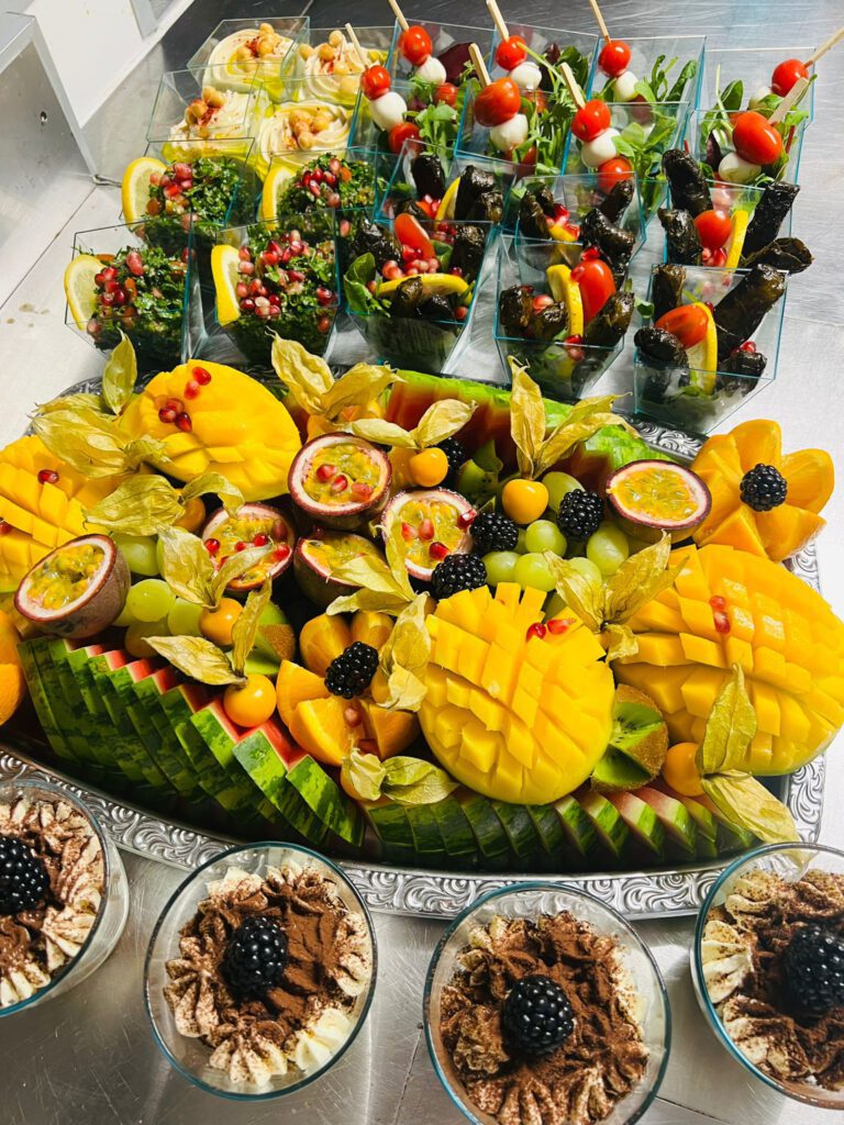 So individuell wie Sie und Ihre Feier ist auch Ihr mediterranes Buffet. Stellen Sie sich Ihr Wunschmenü ganz einfach selbst zusammen: Wählen Sie aus einer Vielzahl an köstlichen Antipasti, aromatischen Fleisch- und Fischgerichten, würzigen Saucen, frischen Gemüsevariationen und klassischen mediterranen Beilagen. Abgerundet wird Ihr Menü durch eine Auswahl an Vorspeisen und verführerischen Desserts, die den Geschmack des Mittelmeers auf Ihren Tisch bringen.